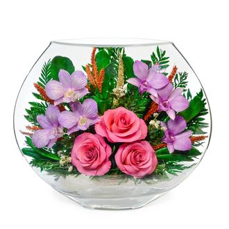 Материал: розы, орхидеи, стекло