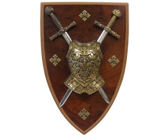 Панно представляет образцы мечей двух легендарных королей прошлого.