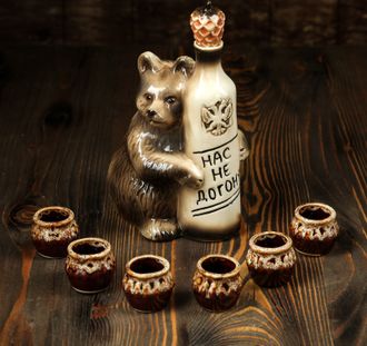 Модель № BA74: штоф и 6 рюмок "Медведь: нас не догонят"