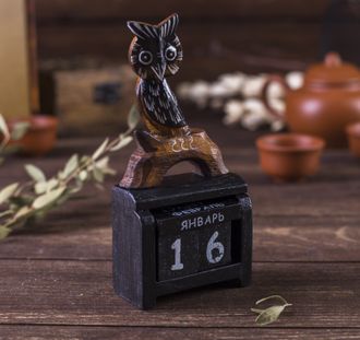 Настольный календарь "Филин" из дерева албезии