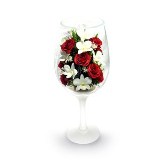 Полуметровый бокал, наполненный орхидеями и розами